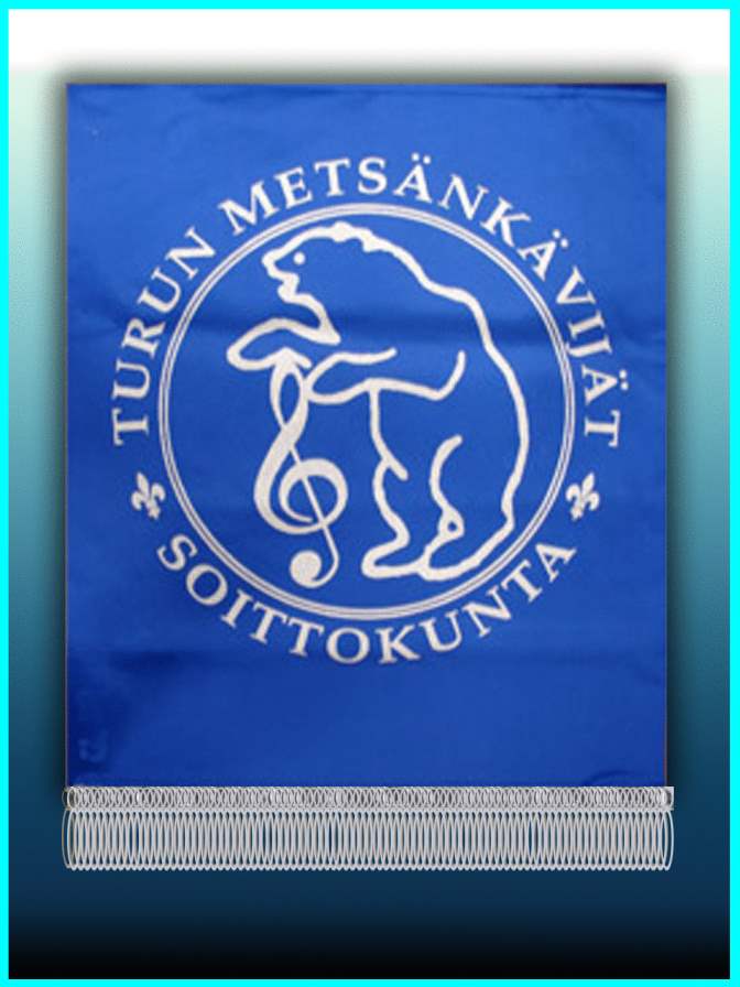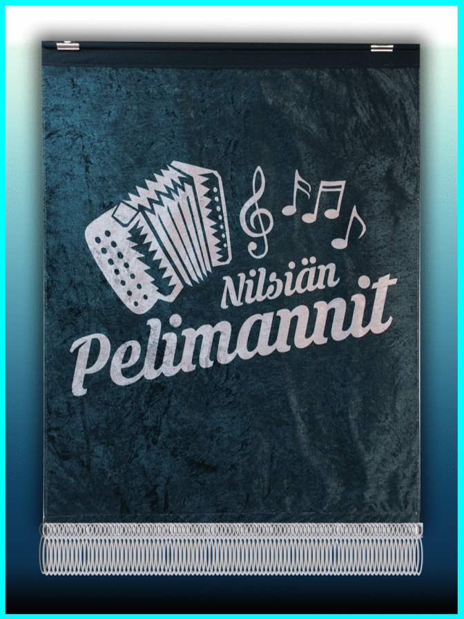Nuottiteline standaari painetaan korkealaatuiselle satiinikankaalle tai loimusametille. Kovikekangas, paksu taustakangas sekä