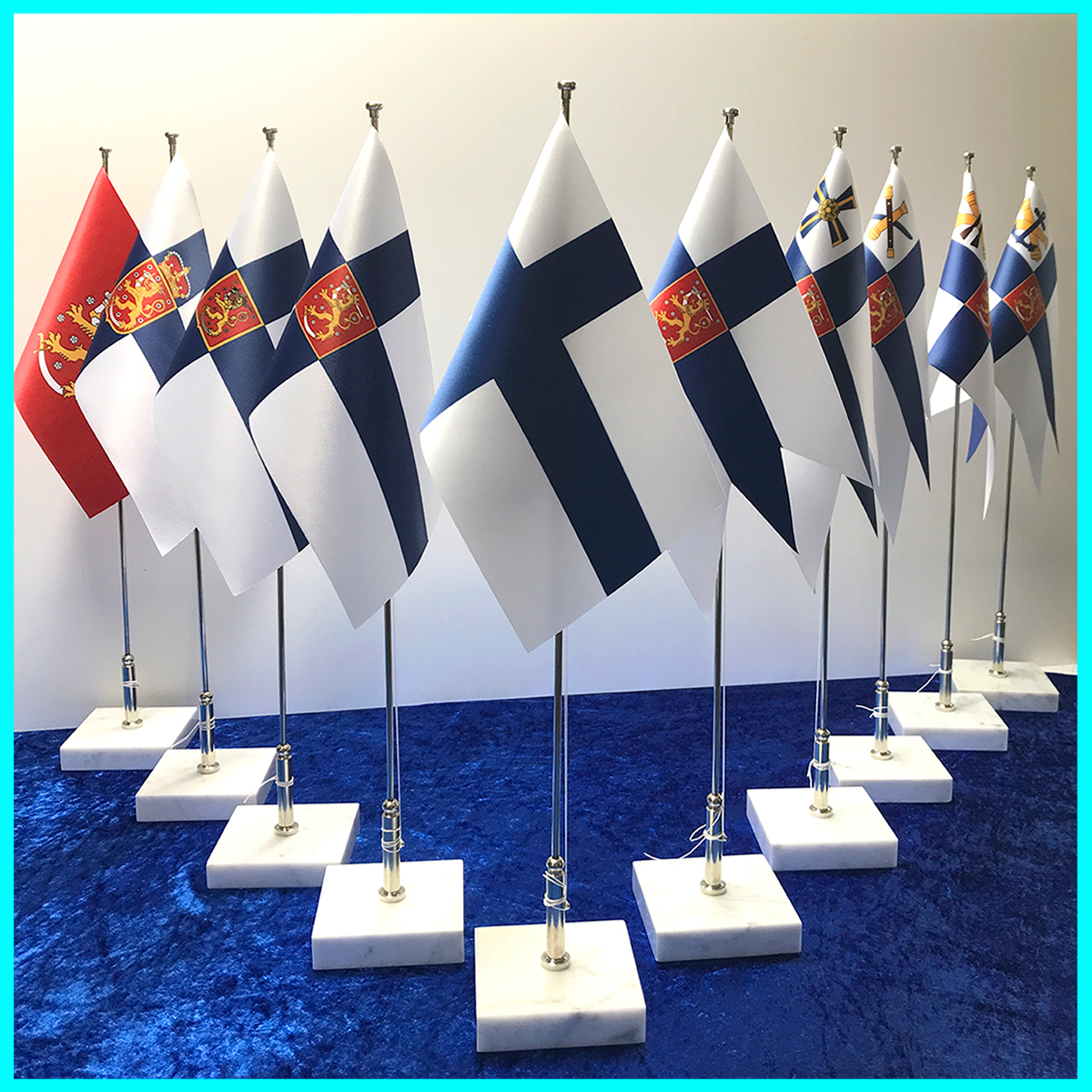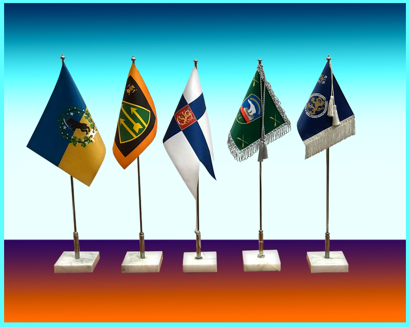 Pöytäliput ovat valtioiden, yhdistysten tai yritysten lipputangossa pidettäviä pienoislippuja. Valmistamme liput Suomessa laadukkaasta morsiuspuku satiinista, läpipainettuna. Kaksipuoliset lippumme ovat tarkkoja kopioita virallisista salkolipuista, oikeilla mittasuhteilla, muokattuna kromattuun pöytälipputankoon sopiviksi. Lipun korkeus on 14 cm ja pituus määräytyy eri lippujen mittasuhteiden mukaan. Pakettiin kuuluu lipun lisäksi valkoinen marmorikivi ja kromattu pystytanko narun kiinnitysniitillä. Kaikkia lippuja saa myös ilman jalustaa. Valikoimaamme kuuluu Suomen lippujen lisäksi myös kaikki maailman valtioiden liput sekä eri organisaatioiden pöytäliput kuten esim. (Olympia, Nato, joukko-osastot, piirit ym.). Valmistamme lippuja myös yritysten ja sukuseurojen sekä erilaisten yhteisöiden tunnuksilla. Ulkomaisia vieraita tai juhlia ja tapahtumia on hyvä kunnioittaa pöytälipulla.